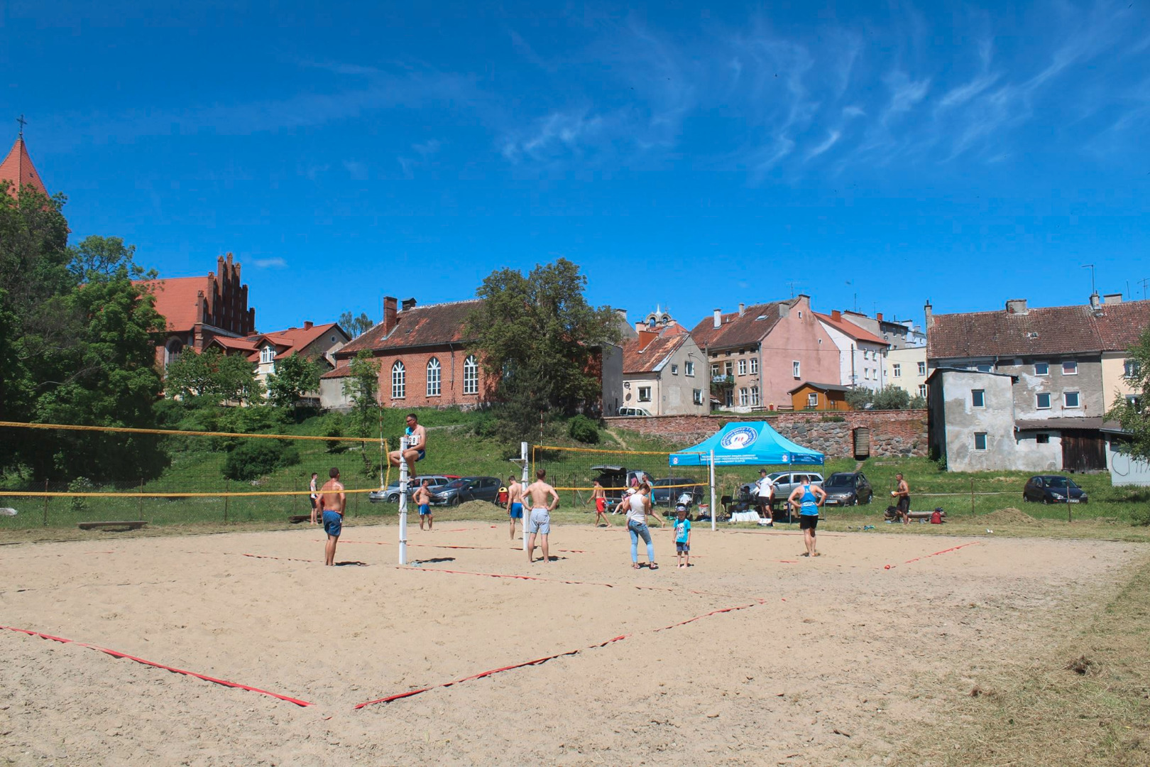 Po zakończeniu halowego sezonu siatkarskiego miłośnicy tego sportu przenoszą się na boiska do piłki plażowej. Regularnie odbywają się turnieje męskie oraz par mieszanych (mixty). Ponadto co roku odbywają się zawody w piłce plażowej organizowane przez służby mundurowe z województwa Warmińsko – Mazurskiego.