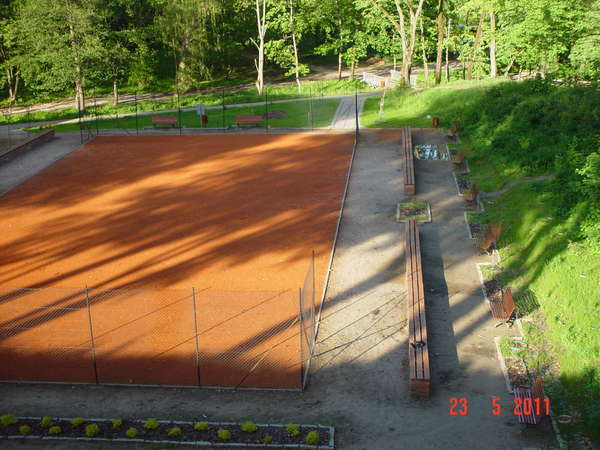 Z kortu tenisowego korzysta wąska grupa zapalonych tenisistów, którzy w letnie popołudnia spotykają się na obiekcie regularnie.
